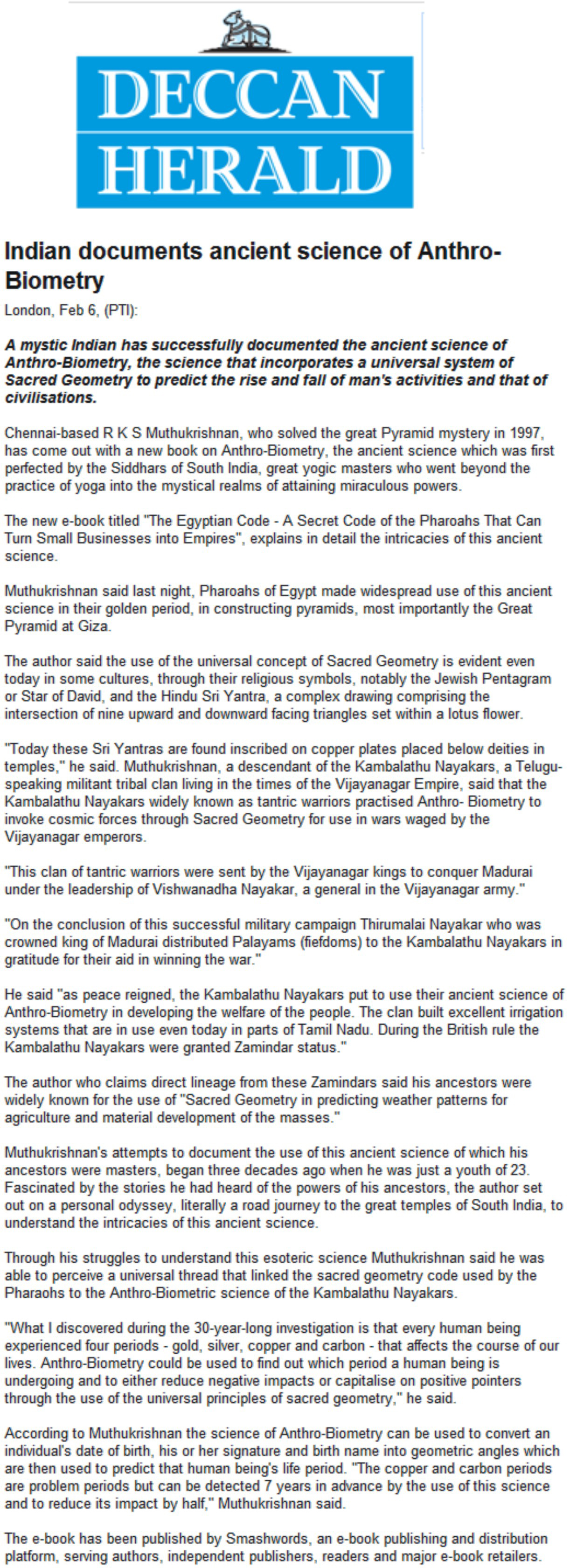 06/02/2011 Muthukrishnan who solved the great pyramid mystery in 1997 has come out with a new boo