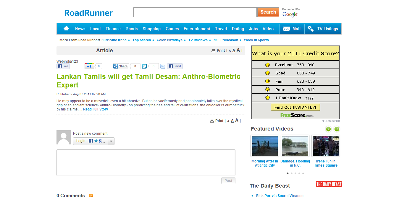 LANKAN TAMILS WILL GET TAMIL DESAM: ANTHRO-BIOMETRIC EXPERT