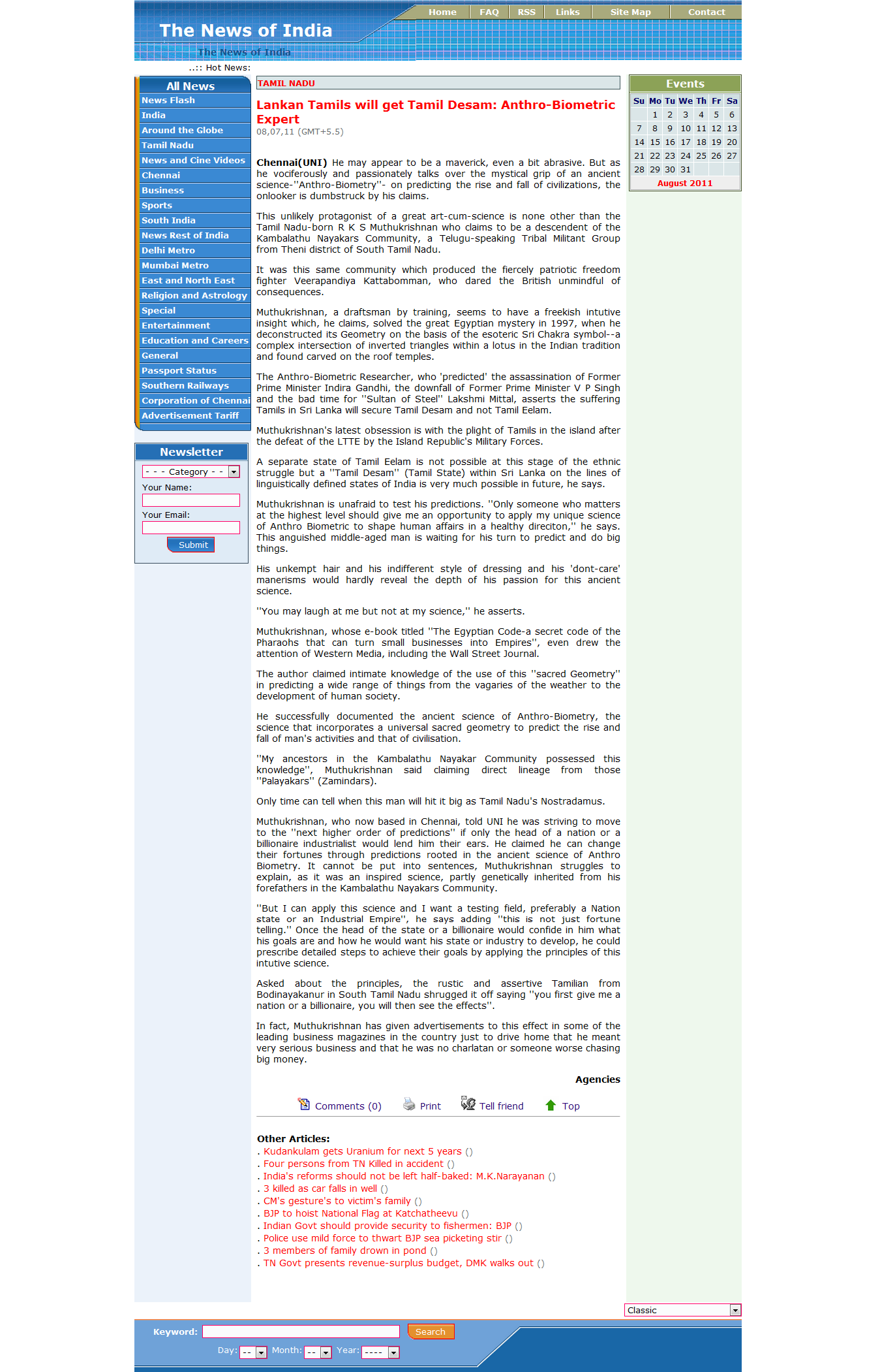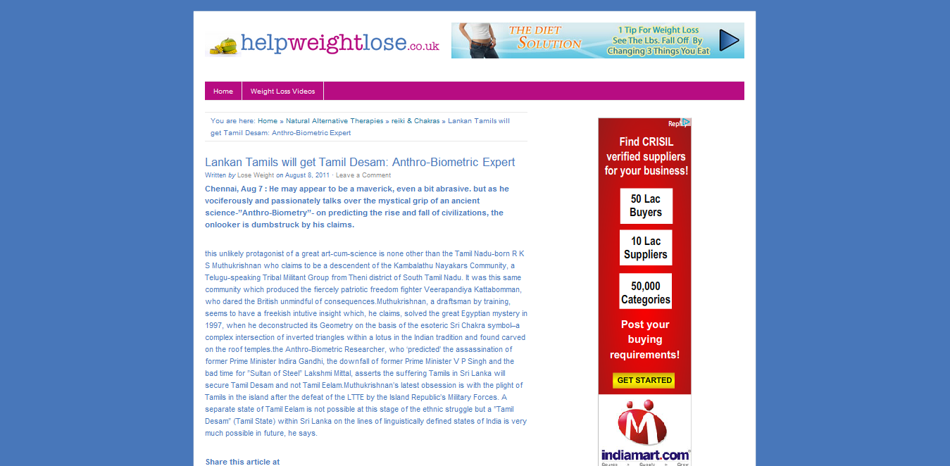 LANKAN TAMILS WILL GET TAMIL DESAM: ANTHRO-BIOMETRIC EXPERT