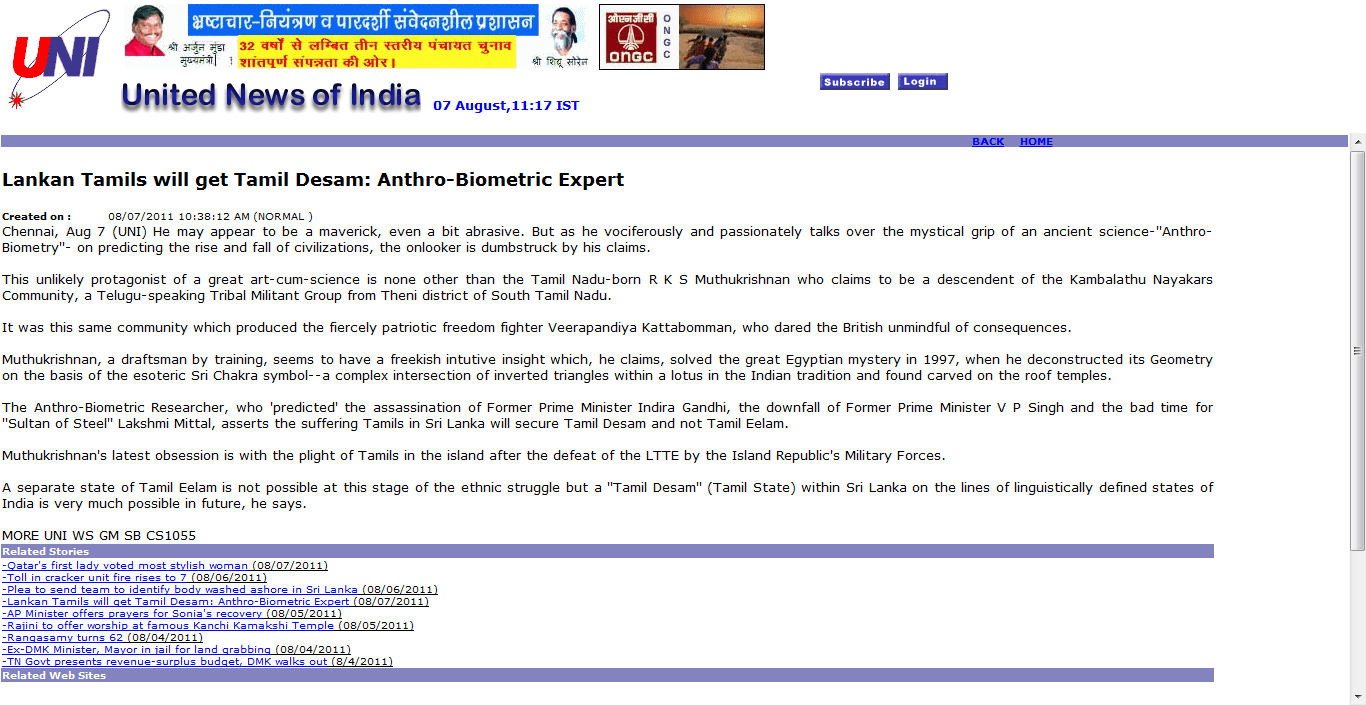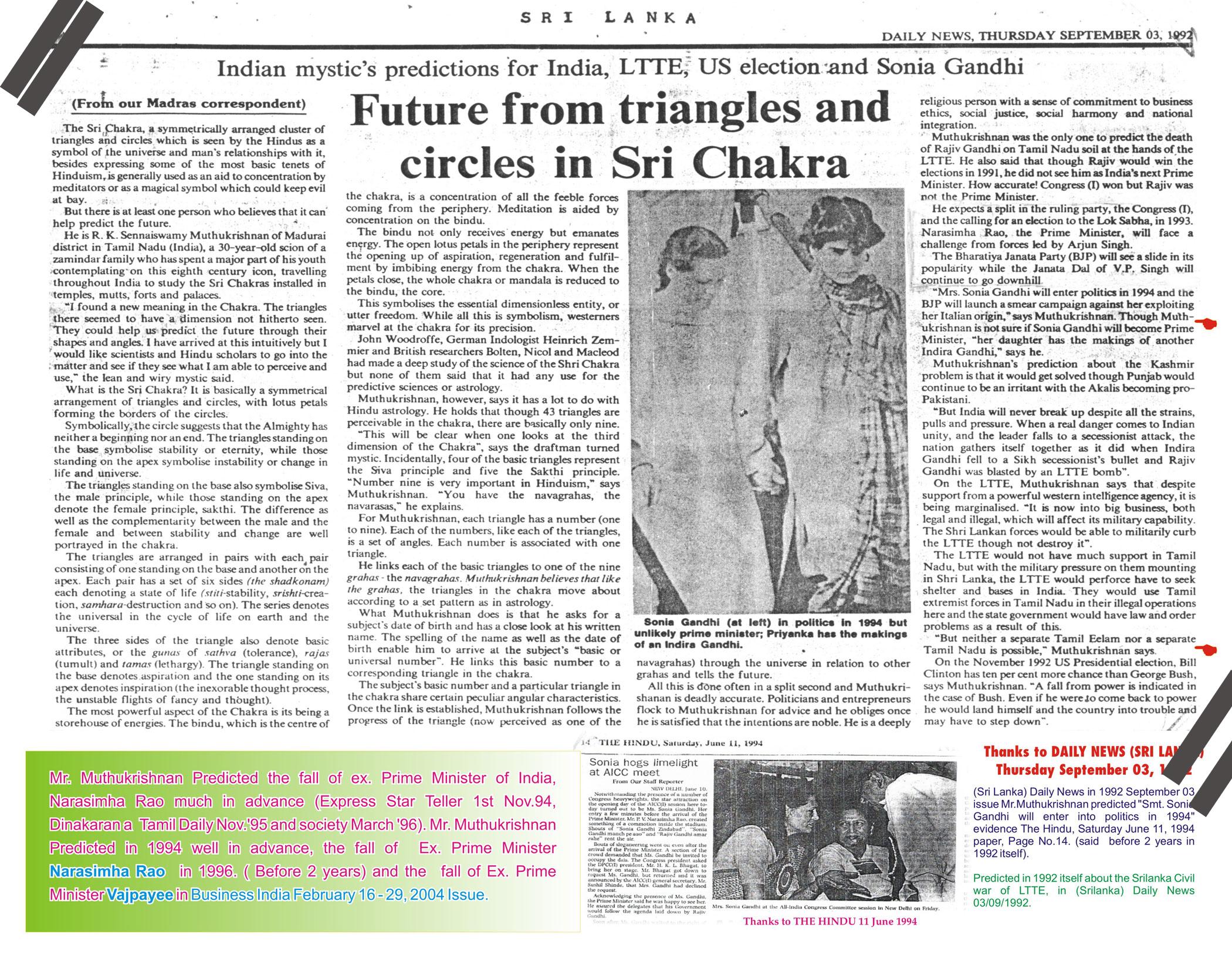 Future from Triangles and Circles in Sri chakra - Indian Mystic’s predictions for India ,LTTE,US election and Sonia GandhiSRI LANKA DAILY NEWS