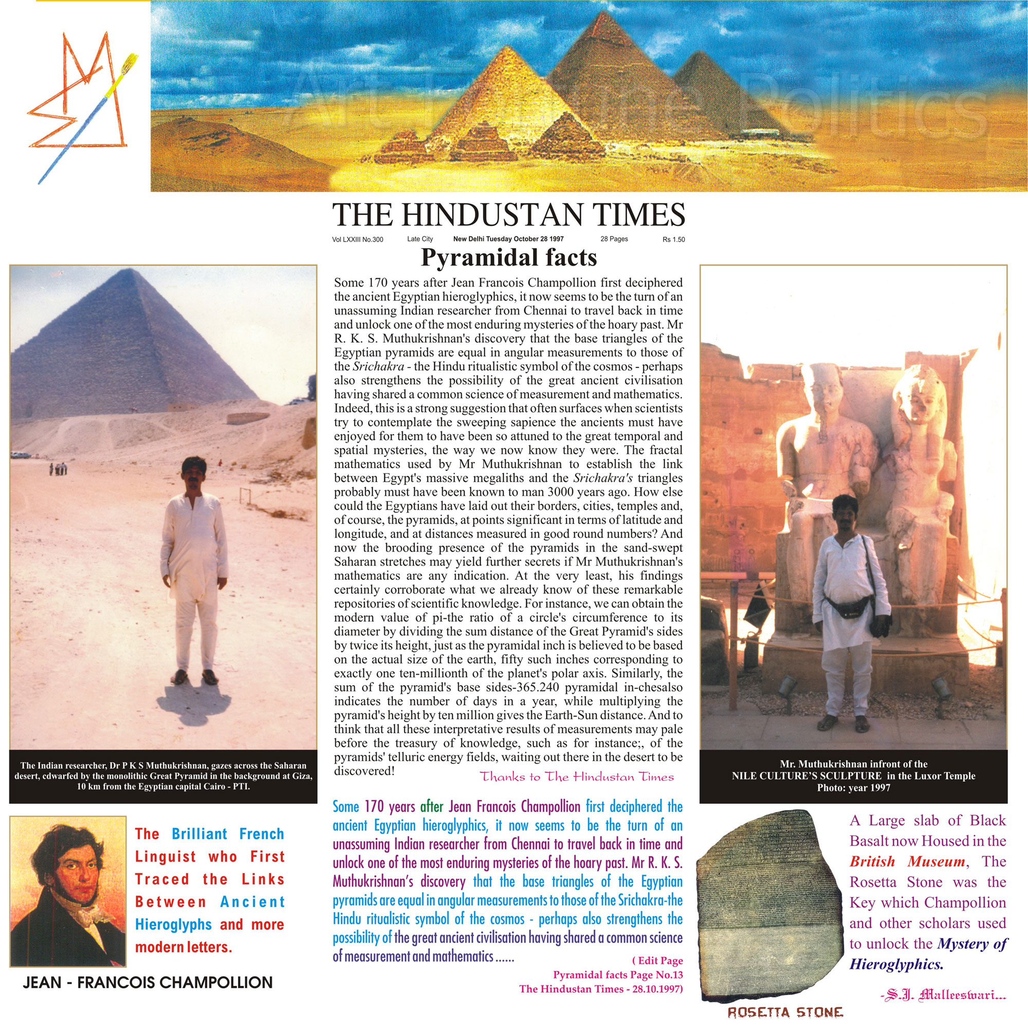06/02/2011 Muthukrishnan who solved the great pyramid mystery in 1997 has come out with a new boo
